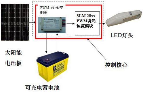 太陽能路燈的構成十分簡單(圖1)。從圖1所示的框圖中可見,其中最核心的部件,就是PWM調光控製器和恒流模塊。