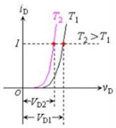 LED的溫度係數通常為負的,也就是當溫度升高時(T1->T2),伏安特性向左移動。其值大約是-2mV/℃,那麼當其結溫增加50度時,其正向電壓就會降低0.1V,假如用恒壓電源供電時,其正向電流就會增加。比如,常溫25℃時LED最佳工作電流20mA,當環境溫度升高到85℃時,PN結電壓VF下降,工作電流急劇增加到35mA~37mA,但此時電流的增加並不會產生亮度的增加,稱為亮度飽和。同樣,當環境溫度下降至-40℃時,結電壓VF上升,最佳工作電流將從20mA減小到8mA~10mA,發光亮度也隨電流的減少而降低,達不到應用場所所需的照度。