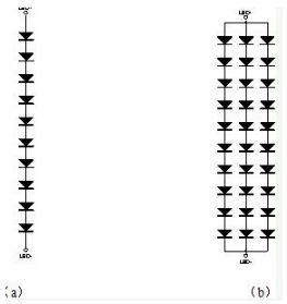 多個LED也可以采用串並聯的結構,通常我們稱之為幾串幾並。例如10串3並就是如圖9b的結構。