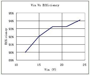 由圖中可見,如果采用12V的蓄電池,它的效率就隻有90%左右,而如果改用24V的蓄電池,它的效率就可以達到94%。這就可以減少芯片的功耗,降低芯片的溫度,提高芯片的可靠性。