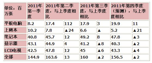 2011年第四季度液晶麵板供貨:問題在於開工率而非供貨量