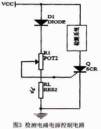 本係統中將光敏電阻與單向可控矽配合使用,組成檢測電路的啟動開關電路。其原理圖如圖3所示。