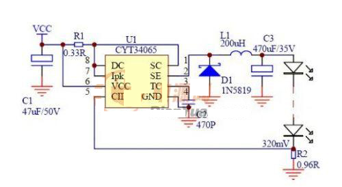 CYT34065是在CYT34063基礎上,改進設計而派生的LED驅動器。CYT34065繼續保留CYT34063優秀的特點外,並且還能高效率的驅動LED。CYT34065是專門為LED大功率而設計的一款直流驅動器,可選擇升壓、或降壓應用,最大輸出典型值1A,效率高達85%以上。 蓄電池直流應用設計場所中CYT34065有著較高的性價比,高可靠性、穩定性高,恒流效果極佳。