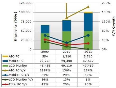 根據NPD DisplaySearch最新發布的中國電腦出貨和預測報告Quarterly China PC Shipment and Forecast Report指出,Mobile PC推動中國電腦市場快速成長,Mobile PC包括筆記本電腦、上網本和平板電腦。2011年下半年電腦總出貨量達5千340萬台,較上半年增長了12.7%。中國是全球最大的台式電腦市場和顯示器市場(包括監視器和一體機顯示器),是全球第三大平板電腦市場以及第四大筆記本電腦和上網本市場。 就整個電腦市場而言,中國全球排名第三,北美和EMEA市場排在前兩位。