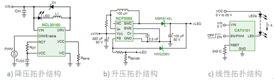中等電壓LED照明應用需要優化的驅動器方案。安森美半導體提供電感型、電荷泵型、線性三種不同拓撲結構的中等電壓LED驅動器方案,可滿足用戶不同的應用需求,見圖1。