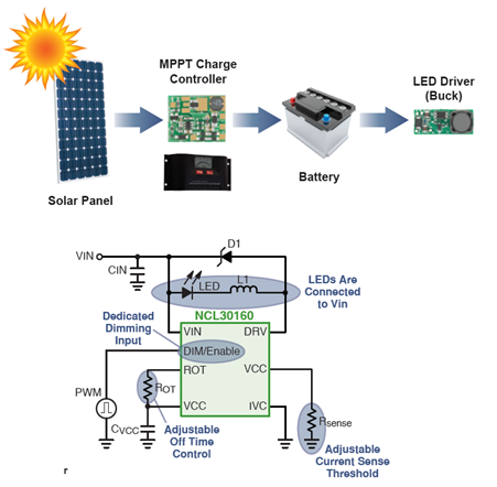 NCL30051與NCP30160IC在一起搭配工作,可以最少的外部元件簡化電源電路設計。這種架構使芯片組能夠集成在更緊湊及更高性價比的LED照明電源中,用於戶外照明(如LED路牌、街燈、停車場燈)等通用照明應用。