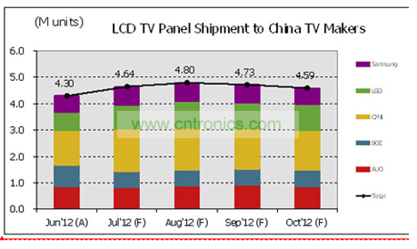 大陸廠商麵板采購量在經曆6月份的溫和成長之後,預計7月采購量將成長8%(M/M)、8月成長3%(M/M),而到9月份將衰退1-3%(M/M)。假如麵板廠商8月份出貨達成計劃,那麼8月份中國廠商的麵板采購量將成為全年度最高的月份。但根據過去的幾個月來看,麵板廠商一般達標率都會低於預期約6個百分點左右。我們認為麵板廠商出貨計劃可能持續偏高,若2012年第三季需求無顯著成長,麵板廠商在持續較高渠道庫存狀況下也將趨於謹慎。