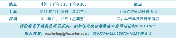 除chu此ci之zhi外wai,其qi他ta版ban塊kuai精jing彩cai紛fen呈cheng,驚jing喜xi不bu斷duan,為wei各ge路lu夥huo伴ban帶dai來lai一yi場chang饕tao餮tie盛sheng宴yan,誠cheng邀yao各ge位wei行xing業ye同tong仁ren前qian來lai交jiao流liu指zhi導dao。預yu知zhi更geng多duo資zi訊xun請qing關guan注zhu我wo們men的de微wei信xin公gong眾zhong號hao“淩雲光視”,或www.lustervision.com,您還可以撥打01052349500-9623提前報名哦。