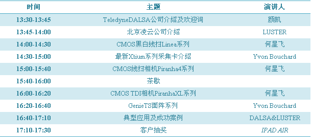 秉bing承cheng客ke戶hu至zhi上shang,以yi市shi場chang需xu求qiu為wei導dao向xiang,感gan謝xie一yi路lu上shang有you新xin老lao客ke戶hu的de陪pei伴ban支zhi持chi與yu理li解jie,才cai使shi得de淩ling雲yun公gong司si在zai前qian進jin的de道dao路lu上shang有you足zu夠gou的de動dong力li與yu方fang向xiang,看kan到dao了le美mei好hao的de視shi覺jiao給gei人ren們men帶dai來lai的de豐feng富fu多duo彩cai的de生sheng活huo。此ci次ci答da謝xie會hui得de到dao了leTeledyne DALSA的高度重視與支持,屆時,DALSA亞太區OEM技術總監Yvon Bouchard、 DALSA線掃描產品資深產品經理何星飛等大咖將會帶來國際前沿的技術與產品資訊: