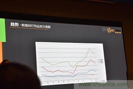 周慧榮現場表示,敦煌網的數據顯示,2013-2014年LED燈具海外采購快速增長,2015年由於世界經濟形勢不穩定,海外買家采購意願減退,今年上半年LED燈具海外采購總體增長開始放緩。