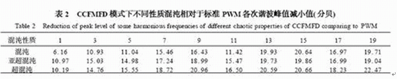 從表中給出的以標準周期PWM前19次諧波為參照的數據可以看出,分別在混沌、亞超混沌及超混沌信號調製下,各次諧波對應處的頻譜數值都得到了明顯的降低。在混沌信號調製下,諧波對應處的頻譜數值平均降低14.87分貝(dB);在亞超混沌信號調製下,諧波對應處的頻譜數值平均降低16.84分貝(dB);在超混沌信號調製下,諧波對應處的頻譜數值平均降低17.86分貝(dB)。若以歐盟(89/336/EEC指令)電磁兼容性導則中限製設備輸入電流諧波分量最大值幅度這一原則,來討論不同性質混沌信號降低電磁幹擾水平的效果,結論非常明顯,即以超混沌信號作為開關調製信號源,比混沌能更好地降低電磁幹擾水平。