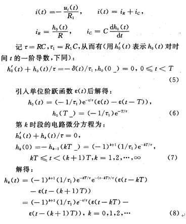 由於電子開關周期性切換,RC電路對外電路的影響表現為:下一時段的輸出電壓初值是上一時段末時刻輸出電壓值乘(-1),即: