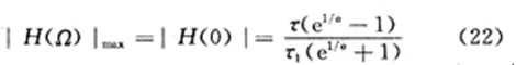 (2)α=τ/T較大時,f=(2n)fT(其中n=0,1,2,…)是係統的阻帶中心頻率,落在這些頻點上的信號將獲得最小傳輸係數,最小傳輸係數(即梳狀濾波器幅頻曲線穀底高度)為: