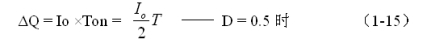 由圖1-6可以看出,在控製開關的占空比D等於0.5的情況下,電容器充、放電的電荷和充、放電的時間,以及正、負電壓紋波值均應該相等,並且電容器充電流的平均值也正好等於流過負載的電流。因此,電容器充時,電容器存儲的電荷ΔQ為: