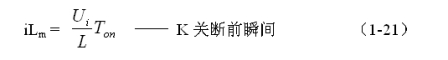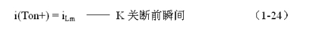 式中i(Ton+)為控製開關K從Ton轉換到Toff的瞬間之前流過電感的電流,i(Ton+)也可以寫為i(Toff-),即:控製開關K關斷或接通瞬間,之前和之後流過電感L的電流相等。實際上(1-23)式中的i(Ton+)就是(1-21)式中的iLm,即: