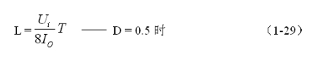 (1-29)和(1-30)式,就是計算反轉式串聯開關電源中儲能電感的公式。同理,(1-29)和(1-30)式的計算結果,隻給出了計算反轉式串聯開關電源儲能濾波電感L的中間值,或平均值,對於極端情況可以在平均值的計算結果上再乘以一個大於1的係數。
