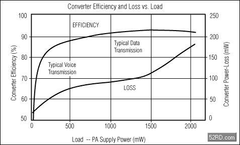 另(ling)外(wai)一(yi)個(ge)需(xu)要(yao)重(zhong)點(dian)考(kao)慮(lv)並(bing)關(guan)係(xi)到(dao)係(xi)統(tong)性(xing)能(neng)的(de)問(wen)題(ti)是(shi),對(dui)於(yu)這(zhe)種(zhong)特(te)殊(shu)用(yong)途(tu)的(de)降(jiang)壓(ya)型(xing)開(kai)關(guan)調(tiao)節(jie)器(qi),有(you)一(yi)些(xie)什(shen)麼(me)樣(yang)的(de)特(te)殊(shu)性(xing)能(neng)要(yao)求(qiu)。為(wei)了(le)便(bian)於(yu)理(li)解(jie),首(shou)先(xian)應(ying)該(gai)研(yan)究(jiu)一(yi)下(xia)功(gong)放(fang)的(de)負(fu)載(zai)特(te)性(xing)。圖(tu)2由一個主要的蜂窩電話製造商提供,表示一個雙極工藝的固定增益W-CDMA功率放大器的負載曲線。在峰值發送功率時,功放需要3.4V的供電電壓,並消耗掉300mA到600mA的電流。在最低發送功率時,也就是當靠近基站並且隻發送話音時,功放僅吸取30mA的電流,電源電壓為0.4V到1V。對應的功放消耗功率分別為2040mW(最大值)和12mW(最小值)。[page]