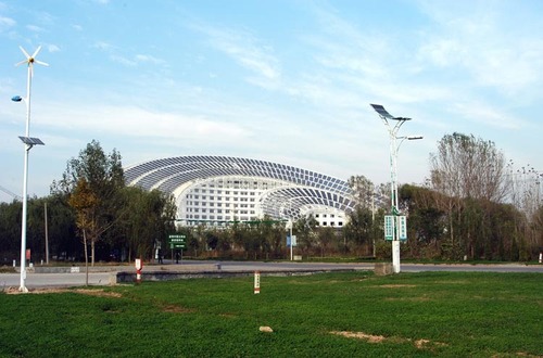 “日月壇-微排大廈”是2010年第四屆世界太陽城大會的主會場。它把太陽能綜合利用技術與建築節能技術相結合,不但完善了太陽能應用技術標準體係、研yan發fa了le一yi批pi具ju有you自zi主zhu知zhi識shi產chan權quan的de太tai陽yang能neng係xi列lie產chan品pin,還hai為wei太tai陽yang能neng規gui模mo化hua推tui廣guang應ying用yong提ti供gong了le寶bao貴gui的de技ji術shu支zhi持chi,整zheng體ti突tu破po了le普pu通tong建jian築zhu常chang規gui能neng源yuan消xiao耗hao巨ju大da的de瓶ping頸jing,綜zong合he應ying用yong了le多duo項xiang太tai陽yang能neng新xin技ji術shu,如ru吊diao頂ding輻fu射she采cai暖nuan製zhi冷leng、光伏發電、光電遮陽、遊泳池節水、雨水收集、中水處理係統、滯水層跨季節蓄能等技術,使多項節能技術發揮應用到極致。