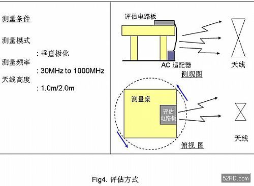 根據評估結果的測試數據,噪聲的發射範圍從幾十MHz到800MHz都有。因此,可以推斷噪聲是從DC/DC轉換器和內部數字處理電路傳向AC適配器,通過電源線發射出來的。