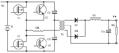 這種技術因通態損耗很低而使得DC/DC變換器的效率很高。但需工作頻率相對較低,一般選取20~40kHz。由於半橋組合開關隻需兩個開關,總的開關器件的數目少,使可靠性顯著提高。