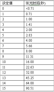 淡光時間是指由燈功率的某一值變化到燈功率的又一新值時所需的時間,利用淡光時間滑動控製條(見主界麵圖2)可選擇16個不同的淡光時間值(如表2所示)。