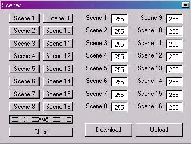 在DALI接(jie)口(kou)中(zhong)的(de)每(mei)隻(zhi)電(dian)子(zi)鎮(zhen)流(liu)器(qi)都(dou)有(you)其(qi)相(xiang)應(ying)的(de)背(bei)景(jing)功(gong)能(neng),背(bei)景(jing)是(shi)指(zhi)預(yu)先(xian)設(she)定(ding)的(de)燈(deng)功(gong)率(lv),相(xiang)關(guan)信(xin)息(xi)並(bing)儲(chu)存(cun)在(zai)電(dian)子(zi)鎮(zhen)流(liu)器(qi)中(zhong),這(zhe)些(xie)信(xin)息(xi)可(ke)以(yi)通(tong)過(guo)相(xiang)關(guan)指(zhi)令(ling)再(zai)加(jia)以(yi)調(tiao)用(yong)。當(dang)電(dian)子(zi)鎮(zhen)流(liu)器(qi)執(zhi)行(xing)一(yi)條(tiao)相(xiang)應(ying)指(zhi)令(ling)時(shi),電(dian)子(zi)鎮(zhen)流(liu)器(qi)將(jiang)會(hui)將(jiang)其(qi)發(fa)光(guang)值(zhi)調(tiao)至(zhi)預(yu)先(xian)設(she)定(ding)值(zhi),通(tong)過(guo)背(bei)景(jing)設(she)置(zhi)界(jie)麵(mian)可(ke)實(shi)現(xian)對(dui)每(mei)隻(zhi)電(dian)子(zi)鎮(zhen)流(liu)器(qi)的(de)背(bei)景(jing)發(fa)光(guang)設(she)置(zhi)。通(tong)過(guo)這(zhe)個(ge)界(jie)麵(mian)利(li)用(yong)“GotoSceneLevel”命令可實現所有工作模式下電子鎮流器的尋址。圖7表示背景設置的高級工作界麵。