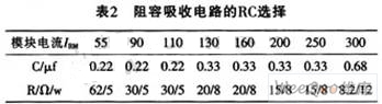 mokuaiguoyabaohuyibanyekecaiyongzurongxishoufa。duiyuchixushijianjiaoduan,nengliangbudadeguodianya,yibankezaimokuailiangduanbinglianzurongxishoudianlu,yongxishoudianrongbaguodianyadediancinengliangbianchengjingdiannengliangcunzhuqilai。eryongxishoudianzubudankeyifangzhidianluzhendang,haikexianzhijingzhaguandaotongshidianrongfangdiansuochanshengdekaitongsunhaohedi/dt值。並聯在晶閘管開關模塊的RC值可參考表2。