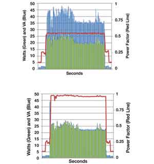 圖1描述了一台使用兩種不同電源適配器供gong電dian的de筆bi記ji本ben電dian腦nao的de功gong率lv消xiao耗hao。即ji使shi實shi際ji負fu載zai一yi樣yang,從cong電dian力li線xian上shang供gong應ying的de功gong率lv也ye有you很hen大da的de不bu同tong。這zhe些xie有you價jia值zhi的de信xin息xi現xian在zai都dou可ke以yi非fei常chang容rong易yi地di獲huo得de。統tong計ji的de結jie果guo可ke以yi用yong於yu調tiao整zheng設she備bei的de工gong作zuo行xing為wei。在zai電dian壓ya或huo線xian路lu頻pin率lv上shang的de微wei小xiao降jiang落luo都dou有you可ke能neng預yu示shi著zhe某mou種zhong供gong電dian故gu障zhang,都dou會hui使shi設she備bei進jin入ru保bao護hu模mo式shi。