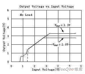 由此得出低壓差線性穩壓器(LDO)的(de)一(yi)個(ge)重(zhong)要(yao)特(te)性(xing),在(zai)輸(shu)入(ru)電(dian)壓(ya)大(da)於(yu)最(zui)小(xiao)工(gong)作(zuo)電(dian)壓(ya)和(he)輸(shu)出(chu)電(dian)壓(ya)其(qi)標(biao)稱(cheng)值(zhi)範(fan)圍(wei)內(nei),負(fu)載(zai)電(dian)流(liu)為(wei)零(ling)時(shi),輸(shu)出(chu)電(dian)壓(ya)隨(sui)輸(shu)入(ru)電(dian)壓(ya)的(de)變(bian)化(hua)而(er)變(bian)化(hua),這(zhe)就(jiu)是(shi)LDO的跟隨特性,待輸出電壓達到其標稱值後不隨輸入而變化,從而達到穩壓的目的,這就是LDO的穩壓特性。如圖為聖邦微電子的SGM2007輸入電壓和輸出電壓的曲線。