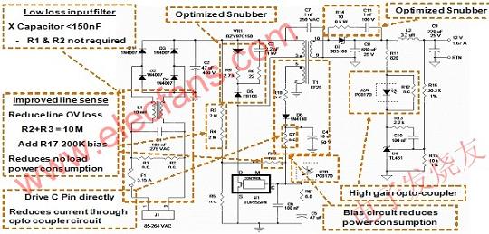 圖1:用PowerIntegrations的TOPSwitch-HX優化過的開關電源。
