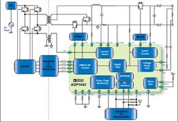 如何提高電源的效率,是目前電源設計中麵臨的重要課題。數字電源技術的出現為提高電源的效率提供了新的方法。ADP1043是ADI公司推出的一款針對高端服務器、存儲器以及通信設備等電源所設計的數字電源控製器,可支持多種拓撲結構,並利用直觀的圖形用戶界麵(GUI)無需用語言進行編程,便可在幾分鍾之內配置包括頻率、時序、電壓設置與保護限製等係統電源參數。圖1所示為ADP1043的典型應用電路。其所采用的數字電源技術可幫助實現高效率電源。