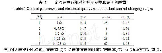 增大充電電流,電池極板上單位時間內恢複的活性物質增多,充電時間就可縮短,danguodadechongdiandianliuhuisunhaidianchi。dianchikejieshoudechongdiandianliushiyouxiande,qiehuisuichongdianshijianchengzhishuguilvxiajiang。zaidianchichongdianguochengzhong,chongdiandianliuquxianzaigaizhishuhanshuquxianyishangshihuidaozhidianchidianjieyefashengxiqifanying (過充電) ,反fan之zhi則ze不bu能neng有you效xiao縮suo短duan充chong電dian時shi間jian。理li想xiang化hua的de電dian池chi快kuai速su充chong電dian過guo程cheng是shi充chong電dian電dian流liu始shi終zhong保bao持chi在zai電dian池chi充chong電dian可ke接jie受shou電dian流liu的de極ji限xian值zhi,即ji充chong電dian電dian流liu曲qu線xian與yu該gai電dian池chi的de充chong電dian可ke接jie受shou電dian流liu曲qu線xian相xiang重zhong合he。本ben文wen選xuan擇ze容rong易yi實shi現xian的de分fen段duan恒heng流liu充chong電dian方fang法fa。其qi關guan鍵jian是shi要yao確que定ding適shi當dang的de分fen段duan恒heng流liu充chong電dian終zhong止zhi判pan斷duan標biao準zhun、恒流充電分段數和各階段恒流充電電流值。