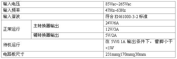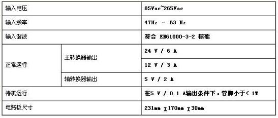 其工作原理是,如果反饋信號水平降至突發進入閾值(FB1)以下,並持續一段時間,控製IC進入主動突發模式。這時開關脈衝停止,輸出電壓則會降低,然後反饋電壓升高。當它升到突發開始水平(FB3),開關脈衝恢複。在處於突發模式期間,輸出會升高,反饋電壓開始降低。當它降到突發結束水平(FB2),開(kai)關(guan)脈(mai)衝(chong)再(zai)次(ci)停(ting)止(zhi)。這(zhe)種(zhong)突(tu)發(fa)交(jiao)替(ti)性(xing)結(jie)束(shu)開(kai)始(shi),構(gou)成(cheng)主(zhu)動(dong)突(tu)發(fa)模(mo)式(shi)。如(ru)果(guo)負(fu)載(zai)由(you)輕(qing)載(zai)提(ti)高(gao)至(zhi)重(zhong)載(zai),反(fan)饋(kui)電(dian)壓(ya)值(zhi)將(jiang)開(kai)始(shi)提(ti)高(gao)。如(ru)果(guo)反(fan)饋(kui)電(dian)壓(ya)水(shui)平(ping)超(chao)過(guo)突(tu)發(fa)退(tui)出(chu)閾(yu)值(zhi)(FB4),IC將離開主動突發模式。屏蔽時間和其他2個閾值(FB1和FB4)可有效降低錯誤觸發突發模式的幾率。最後,如果IC進jin入ru主zhu動dong突tu發fa模mo式shi,最zui大da峰feng值zhi電dian流liu閾yu值zhi將jiang降jiang至zhi原yuan始shi值zhi的de三san分fen之zhi一yi或huo四si分fen之zhi一yi。這zhe可ke大da大da降jiang低di變bian壓ya器qi電dian流liu噪zao音yin。除chu了le待dai機ji轉zhuan換huan效xiao率lv,還hai可ke降jiang低di輸shu出chu電dian壓ya、主總線和輸入電壓感測功率損耗。例如,在主功率級的輸入電壓采樣部分采用4MΩ電阻分壓器。係統性能表1推薦解決方案的技術規格