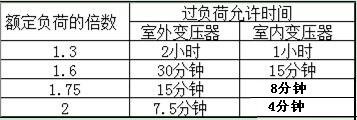 過(guo)負(fu)荷(he)運(yun)行(xing)是(shi)指(zhi)變(bian)壓(ya)器(qi)運(yun)行(xing)時(shi)超(chao)過(guo)了(le)銘(ming)牌(pai)上(shang)規(gui)定(ding)的(de)電(dian)流(liu)值(zhi)。過(guo)負(fu)荷(he)分(fen)為(wei)正(zheng)常(chang)過(guo)負(fu)荷(he)和(he)事(shi)故(gu)過(guo)負(fu)荷(he)兩(liang)種(zhong),前(qian)者(zhe)是(shi)指(zhi)在(zai)正(zheng)常(chang)供(gong)電(dian)情(qing)況(kuang)下(xia),用(yong)戶(hu)用(yong)電(dian)量(liang)增(zeng)加(jia)而(er)引(yin)起(qi)的(de),它(ta)往(wang)往(wang)使(shi)變(bian)壓(ya)器(qi)溫(wen)度(du)升(sheng)高(gao),促(cu)使(shi)變(bian)壓(ya)器(qi)絕(jue)緣(yuan)老(lao)化(hua),降(jiang)低(di)使(shi)用(yong)壽(shou)命(ming),所(suo)以(yi)不(bu)允(yun)許(xu)變(bian)壓(ya)器(qi)過(guo)負(fu)荷(he)運(yun)行(xing)。特(te)殊(shu)情(qing)況(kuang)下(xia)變(bian)壓(ya)器(qi)短(duan)時(shi)間(jian)內(nei)的(de)過(guo)負(fu)荷(he)運(yun)行(xing),也(ye)不(bu)能(neng)超(chao)過(guo)額(e)定(ding)負(fu)荷(he)的(de)30%(冬季),在夏季不得超過15%。對後者,事故過負荷與允許過的時間要求見下表。