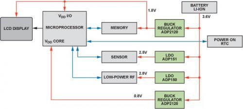 智能手機、平板電腦、數碼相機、導航係統、醫(yi)療(liao)設(she)備(bei)和(he)其(qi)它(ta)低(di)功(gong)耗(hao)便(bian)攜(xie)式(shi)設(she)備(bei)常(chang)常(chang)包(bao)含(han)多(duo)個(ge)采(cai)用(yong)不(bu)同(tong)半(ban)導(dao)體(ti)工(gong)藝(yi)製(zhi)造(zao)的(de)集(ji)成(cheng)電(dian)路(lu)。這(zhe)些(xie)設(she)備(bei)通(tong)常(chang)需(xu)要(yao)多(duo)個(ge)獨(du)立(li)的(de)電(dian)源(yuan)電(dian)壓(ya),各(ge)電(dian)源(yuan)電(dian)壓(ya)一(yi)般(ban)不(bu)同(tong)於(yu)電(dian)池(chi)或(huo)外(wai)部(bu) AC/DC電源提供的電壓。