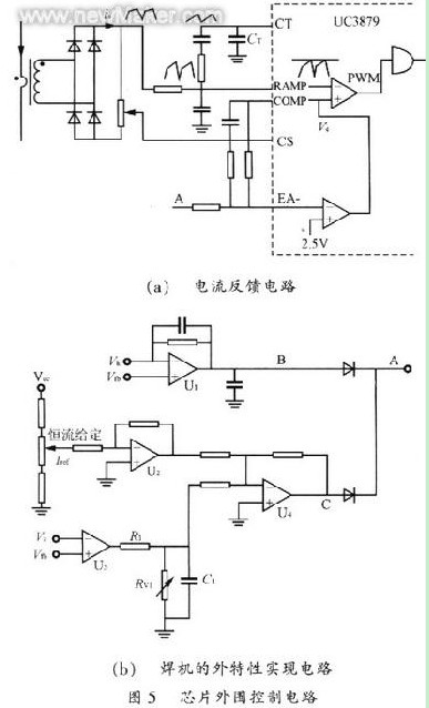 jiyufengzhidianliukongzhideyixiangkongzhidianlushizhenggexitongshejidehexinbufen。suoweifengzhidianliukongzhi,jizhugemaichongdianliuxianzhi,jiushitongguoshishijianceliuguobianyaqiyuanbiandedianliuboxing,youqifengzhidaodageidingdeshikejuedingshuchuPWM脈衝的寬度.使得主開關管的導通電流瞬態值具有相對獨立性。能夠快速地獲得焊機T作所需的理想電流特性曲線.提ti高gao其qi動dong態tai響xiang應ying速su度du和he可ke靠kao性xing。並bing有you助zhu於yu克ke服fu全quan橋qiao變bian換huan器qi所suo固gu有you的de偏pian磁ci問wen題ti。外wai特te性xing控kong製zhi電dian路lu根gen據ju原yuan邊bian電dian流liu峰feng值zhi和he副fu邊bian輸shu出chu電dian壓ya的de反fan饋kui量liang與yu給gei定ding量liang的de偏pian差cha判pan斷duan係xi統tong的de工gong況kuang,並bing通tong過guo移yi相xiang控kong製zhi電dian路lu調tiao節jie輸shu出chu脈mai寬kuan,實shi現xian對dui輸shu出chu電dian流liu的de閉bi環huan控kong製zhi,使shi逆ni變bian焊han機ji具ju有you理li想xiang的de工gong作zuo特te性xing曲qu線xian。
