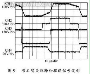 圖9為滯後臂管壓降和其驅動脈衝的波形。