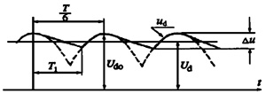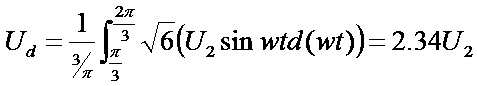 整流輸出電壓Ud的波形在一個周期內波動6次,且脈動波形相同,因此: