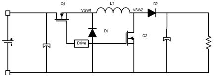 四開關非反相降壓-升壓有兩種操作模式,即降壓模式和降壓-升壓模式。在降壓模式下,轉換器產生輸入電壓脈衝,它經過LC濾波來產生一個較低的直流輸出電壓。輸出電壓可以通過修改相對於開關周期或開關頻率的導通時間來改變。