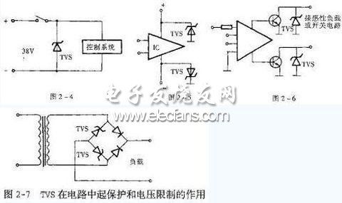 圖2-7電路中TVS起保護和電壓限製的作用。