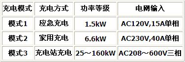 表1 SAEJ-1773推薦采用的三種充電模式