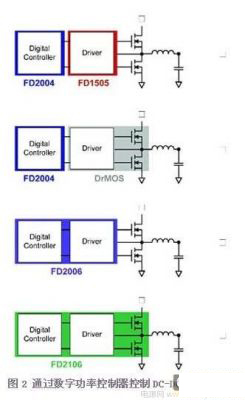 對輸出電流較低的係統電壓,集成式DC-DC轉換器值得推薦,此時,PCB麵積和易於使用都是最重要的考慮因素。數字轉換器,如FD2106 (6A max),象Digital-DC係列的其它產品一樣具有通信功能,可與分立式MOSFET或基於DrMOS等能提供更大電流的轉換器一起使用。對獨立式應用而言,由於不需要與係統內其它轉換器連接,還可以采用集成式轉換器(如飛兆半導體的FAN2106)。