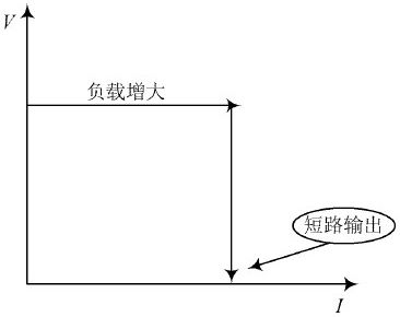 (3) 短路保護。整流模塊的輸出特性如圖5 所示,輸出短路時模塊在瞬間把輸出電壓拉低到零, 限製短路電流在限流點之下, 此時模塊輸出功率很小, 以達到保護模塊的目的, 這樣模塊長期可以長期工作在短路狀態而不至於損壞, 同時當故障排除後模塊可以自動恢複工作。
