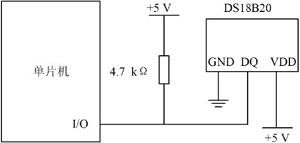 caiyongdutededanxianjiekoujishu,yuweichuliqixianglianjinxuyigenduankouxianjikeshixianshuangxiangtongxin,zhanyongweichuliqideduankoujiaoshao,kejieshoudaliangdeyinxianheluojidianlu;使用中不需要任何外圍電路,全部傳感元件及轉換電路都集成在形如一隻三極管的集成電路內;測溫範圍- 55~ +125℃,精度可達±0.5℃,可編程9~12位A/D轉換精度,測溫分辨率可達0.0625℃,可實現高精度測溫;測量結果直接輸出數字溫度信號,同時可傳送CRC校驗碼,具有極強的抗幹擾糾錯能力;支持多點組網功能,多個DS18B20可掛在總線上,實現組網多點測溫。適應電壓範圍寬:3.0~5.5V,在寄電源方式下可由數據線供電;DS18B20與單片機連接如圖1所示,單總線器件隻有一根數據線,係統中的數據交換、控製都在這根線上完成,單總線上外接一個4.7Ω的上拉電阻,以保證總線空閑時,狀態為高電平。