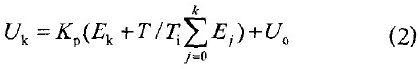 式中Uo-- 初始值;Uk - - 第k次采樣點獲得的控製量;Ek--第k次采樣點獲得的偏差量;Ej--第j次采樣點的偏差值;k一第k次采樣點。