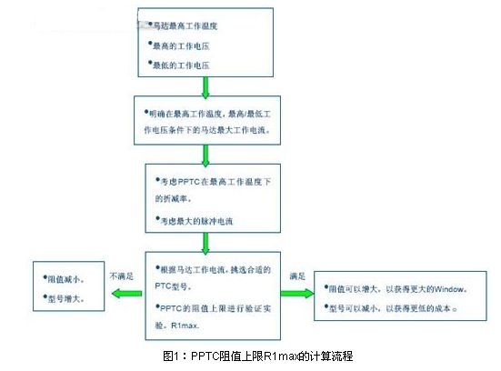 首先要確認PPTC的阻值上限R1max。下圖1為PPTC阻值上限R1max的設計流程。