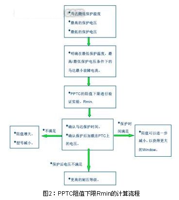 其次確認PPTC的阻值下限Rmin。下圖2為PPTC阻值下限Rmin的設計流程。