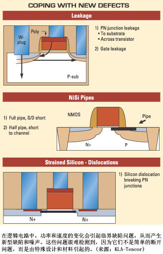 涉足尖端技術研究工作的芯片製造商正在把無數新材料和奇特的器件結構結合起來,用於65nmjigengdijiediandeliangchan。tongshitamenfaxian,zaizhexieyanjiushangdenulishengchandejieguohaibaokuomuqianbixuzheshoujiejuegeqijiangegecengshangchuxiandeyuelaiyueduodexiweidedianquexianheweixiaowuliquexian。zaicunchuqizhong,kenenghuichuxianduojingguizusaiguandaowentipoly-plug piping problems,從而引起BPSG(硼磷矽酸鹽玻璃)孔隙問題。在邏輯領域,使用應變矽引起的應變矽位錯可能產生缺陷,有時這類缺陷直到後道工藝才顯露出來。