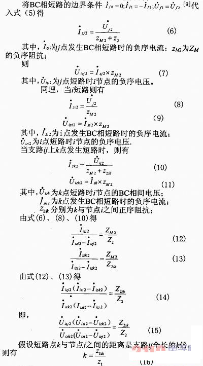 這樣,隻需比較短路時實測m節點的電壓與線路末端短路m節點電壓的理論值,即可求得短路的位置。