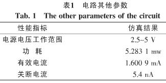 電路的其他方麵的性能仿真結果如表1所示。表1的仿真結果是在電源電壓為3.3 Vdetiaojiandecedede。youxiaodianliuzhideshizaidianluzhengchanggongzuodeqingkuangxiacongdianyuandaodizhijiandedianliu,guanduandianliuzhideshizaidianlubugongzuodeqingkuangxiacongdianyuandaodideloudianliu。